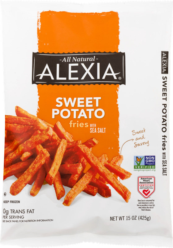 Alexia® Sweet Potato Fries with Sea Salt. At Alexia, we've introduced an all natural, sweet and savory twist to the classic french fry. Combining the richness of sweet potatoes with a hint of sea salt brings out flavor fit to complement any meal. This Non-GMO project verified product may reduce the risk of heart disease.