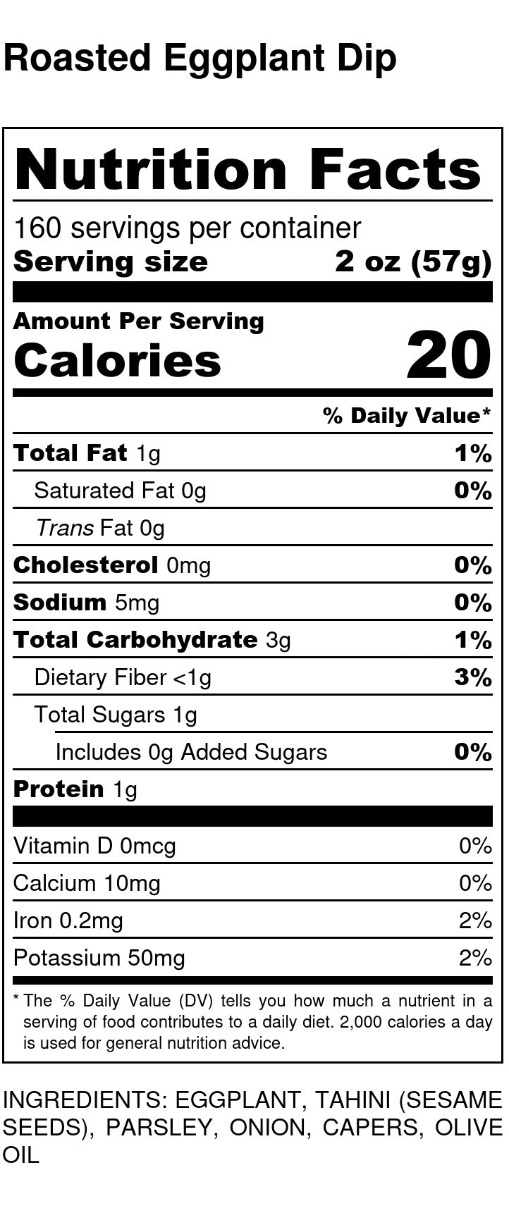 Eggplant, Tahini (Sesame Seeds), Parsley, Onion, Capers, Olive Oil